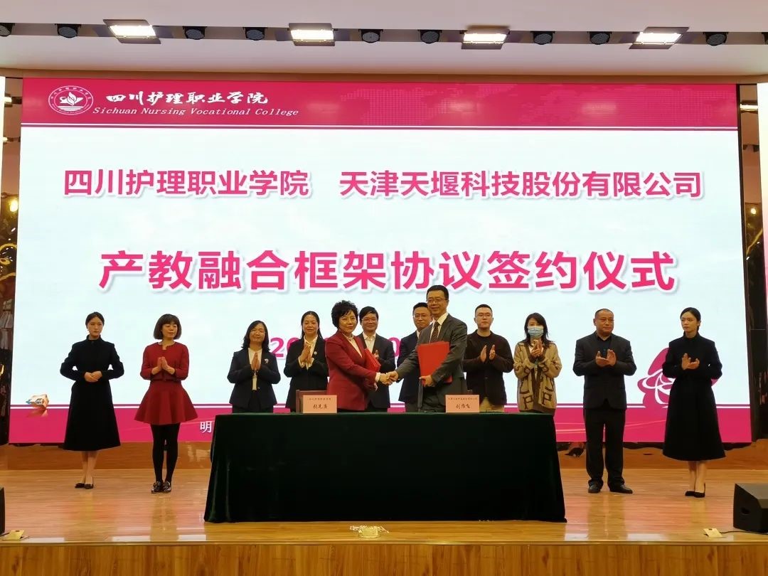 天堰科技于2021年入选国家级产教融合企业,双方一致表示,要以本次签约和揭牌仪式为契机,紧密对接市场需求,探索医药卫生类专业虚拟仿真产学研合作新模式,实现合作、共赢、共发展!